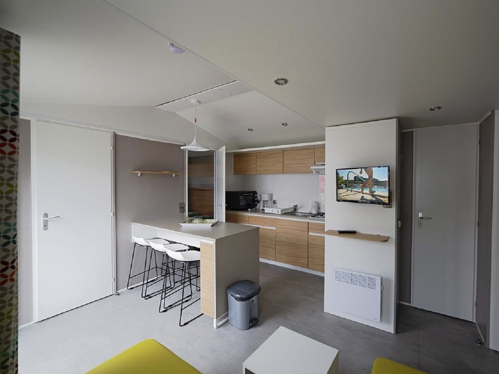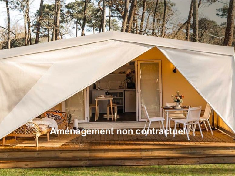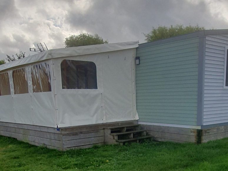 This mobile home has an integrated terrace. Ideal for families with infants, it adapts to all pitches thanks to its reversible terrace, ensuring guest privacy.